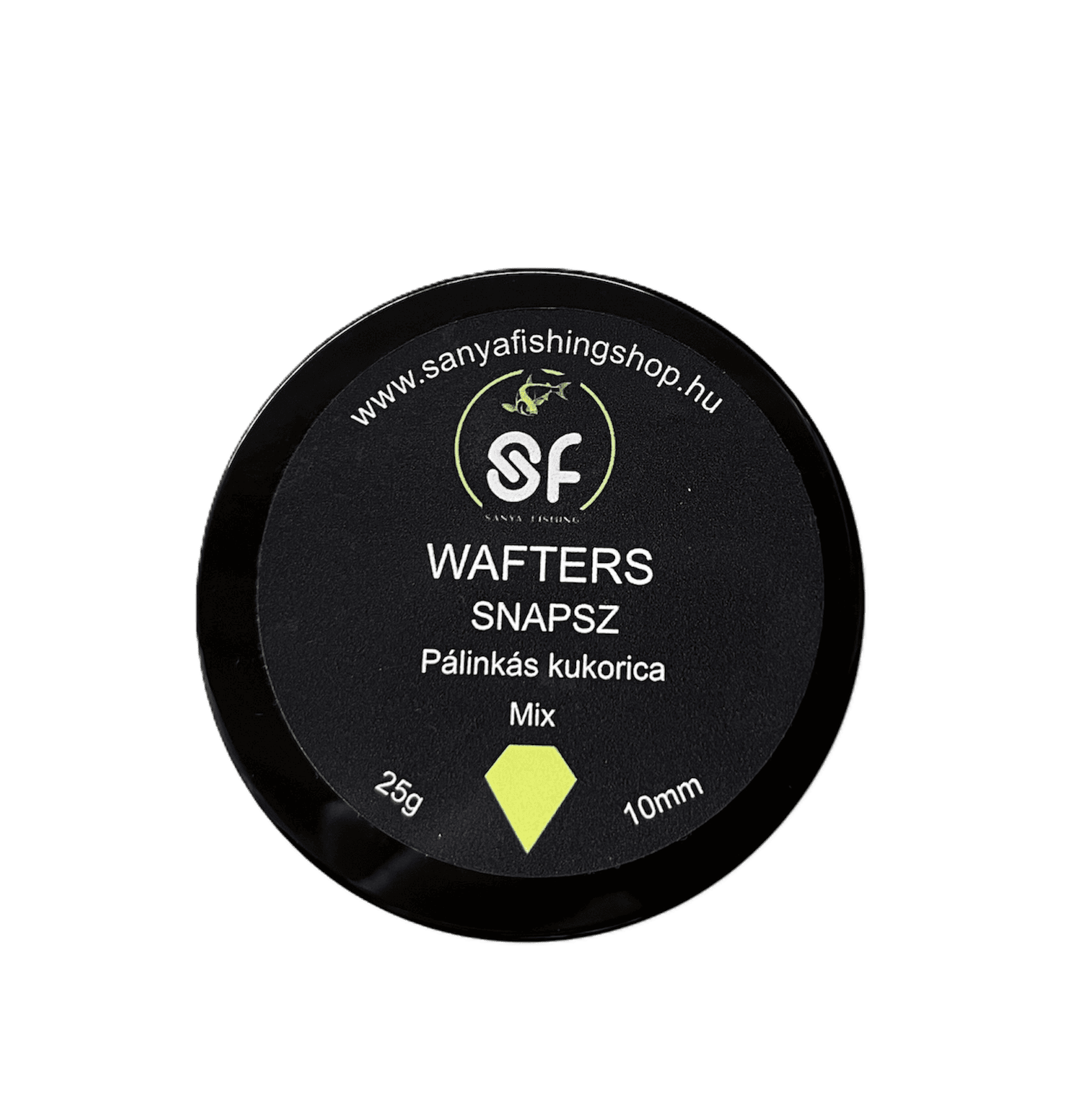 SNAPSZ Wafters Mix pálinkás kukorica ízben, fluo sárga színben. 10 mm-es, kritikusan kikönnyített csali, amely csalitüskére egyszerűen felhelyezhető. Kerek és dumbell formában, 25 g-os kiszerelésben kapható.